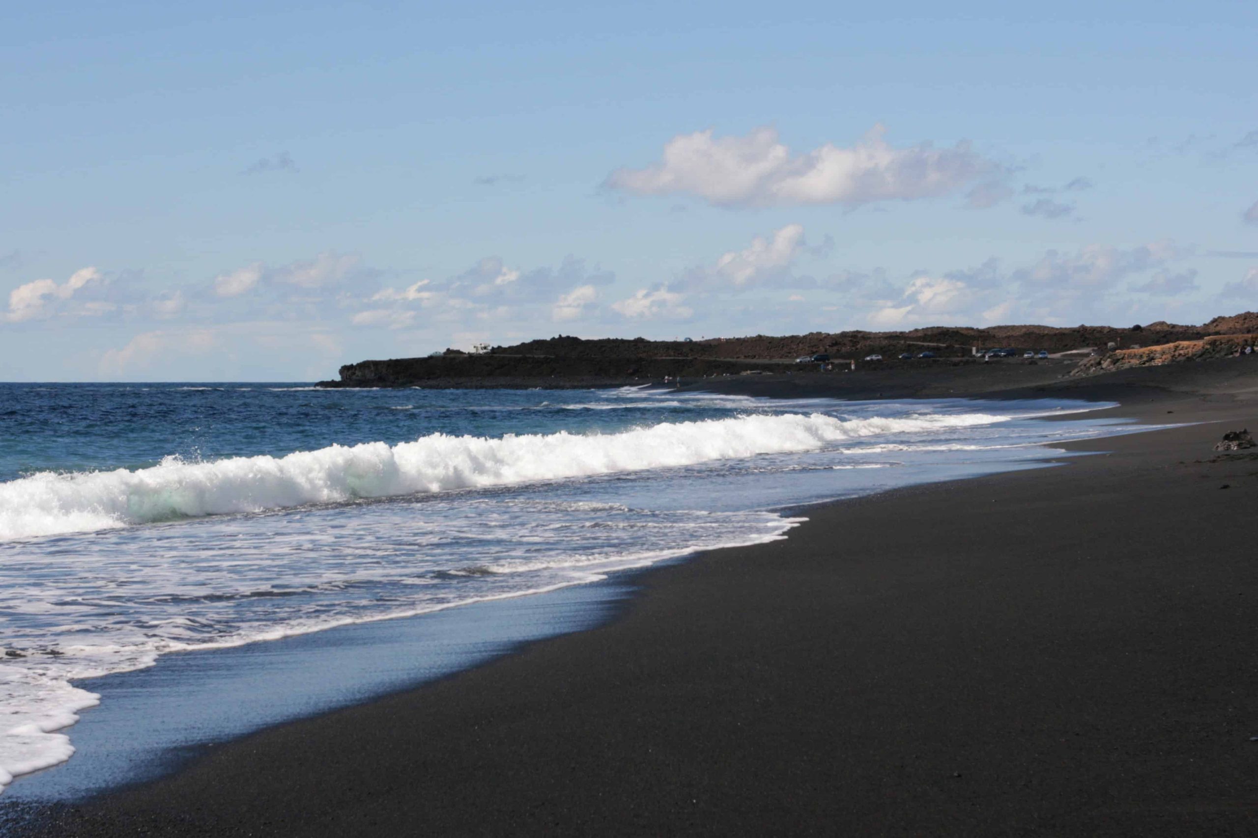 Playa Janubio is a wild black volcanic sand beach of Janubio. Situated in the Lanzarote West coast waves can be big and dangerous.