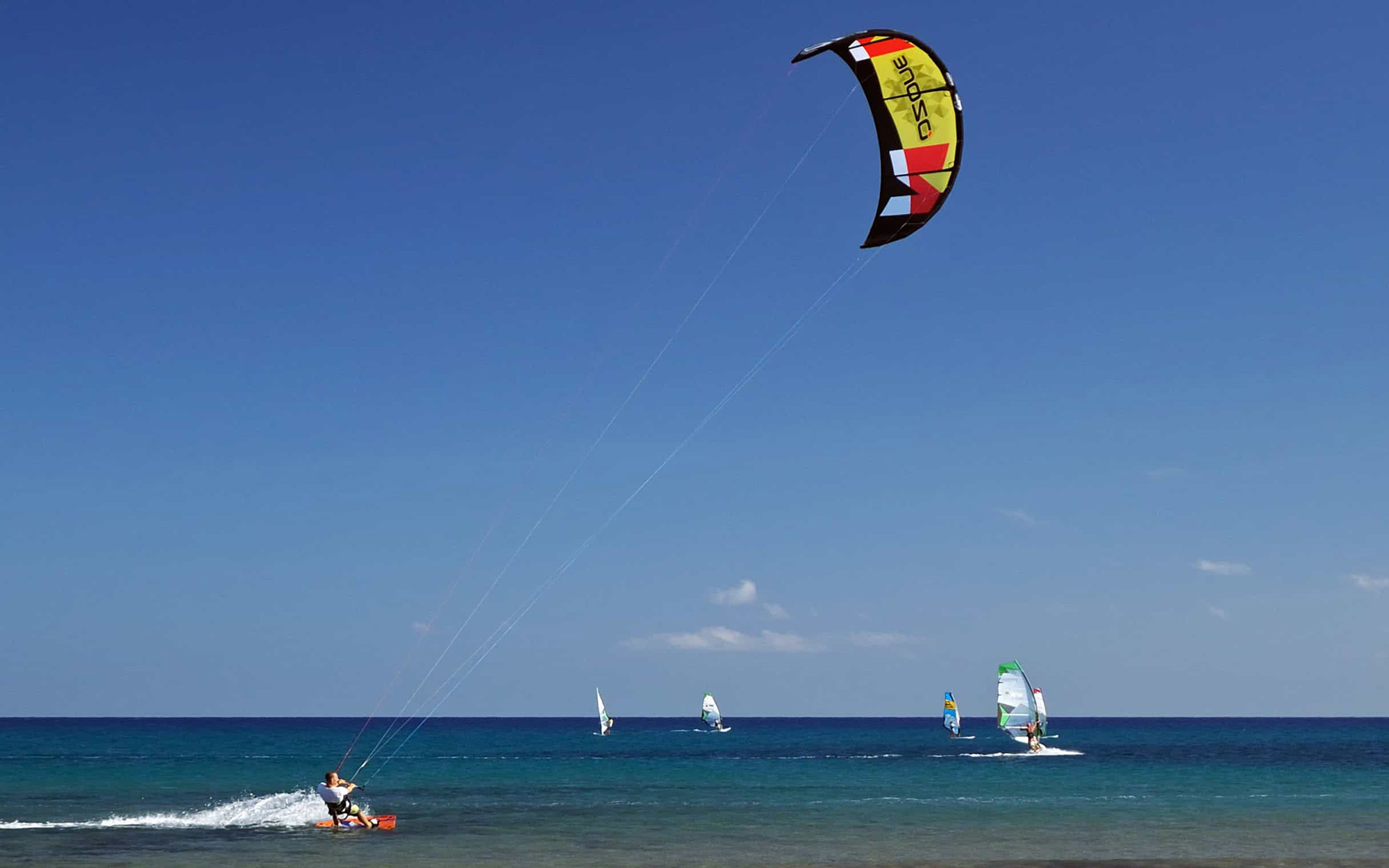 Consistent Summer time trade winds and waves bring great Kite Surfing conditions to Lanzarote shores.