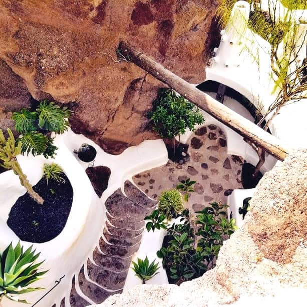 The site where the building was created is an old volcanic stone quarry in the town of Nazaret in Teguise. Many of the labyrinthian walk ways and tunnels were created over hundreds of years by the circulating winds. These tunnels and the architects creativity augmented something created by nature into an amazing structure to see, enjoy, explore and interact with.
