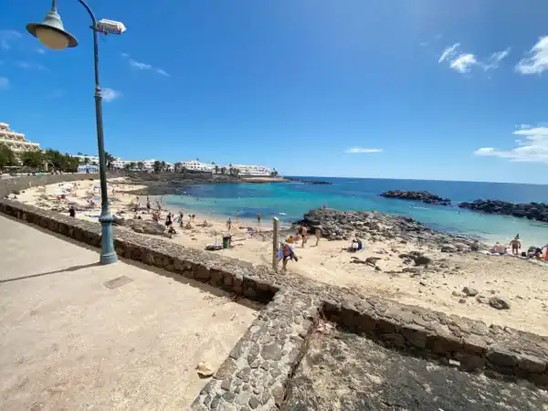 The sand is a good light colour and water is very clear. Great for swimming and snorkelling. Located centrally in Costa Teguise it is close to a large assortment of shops, bars and restaurants. If you are visiting by car parking is close by.