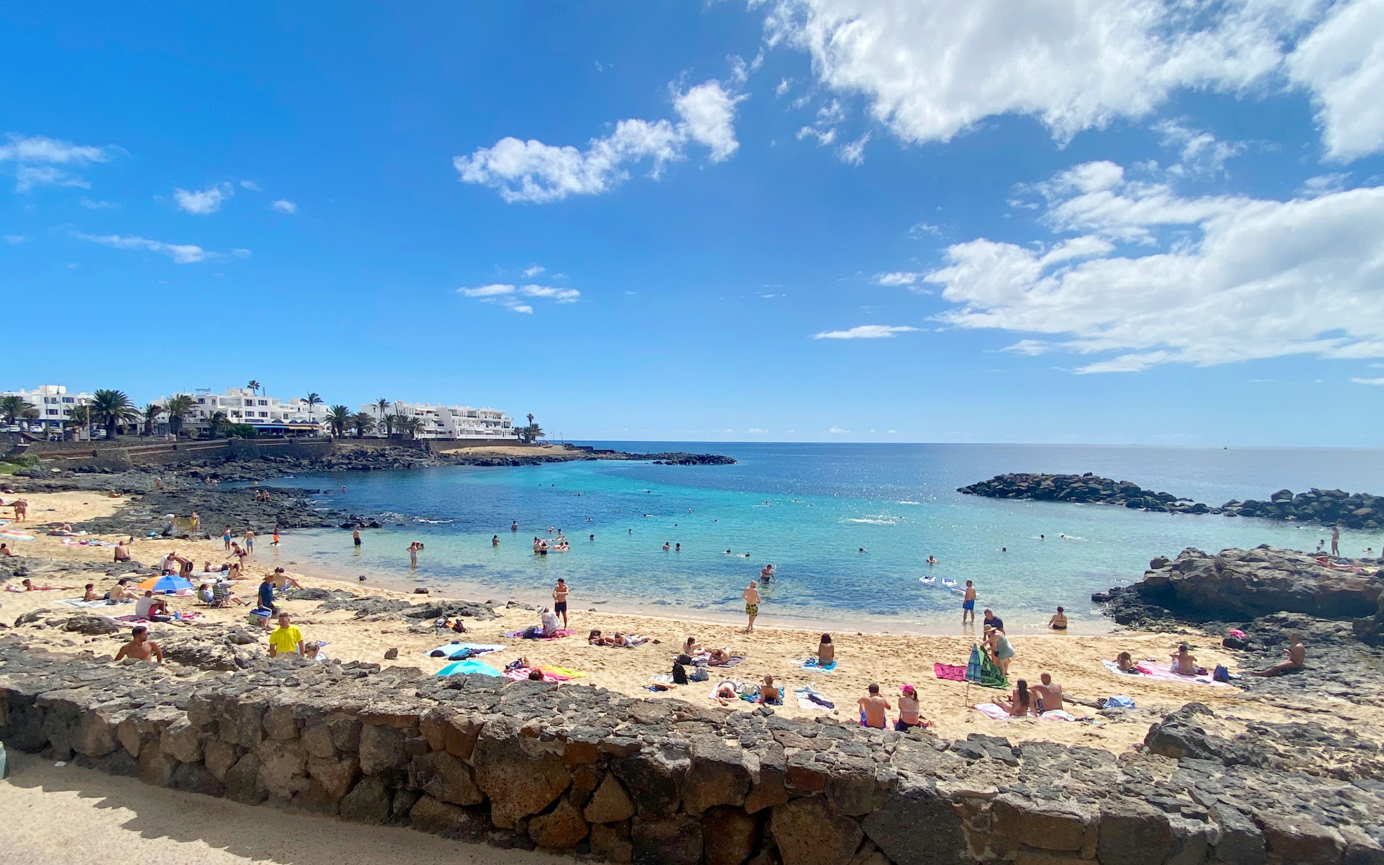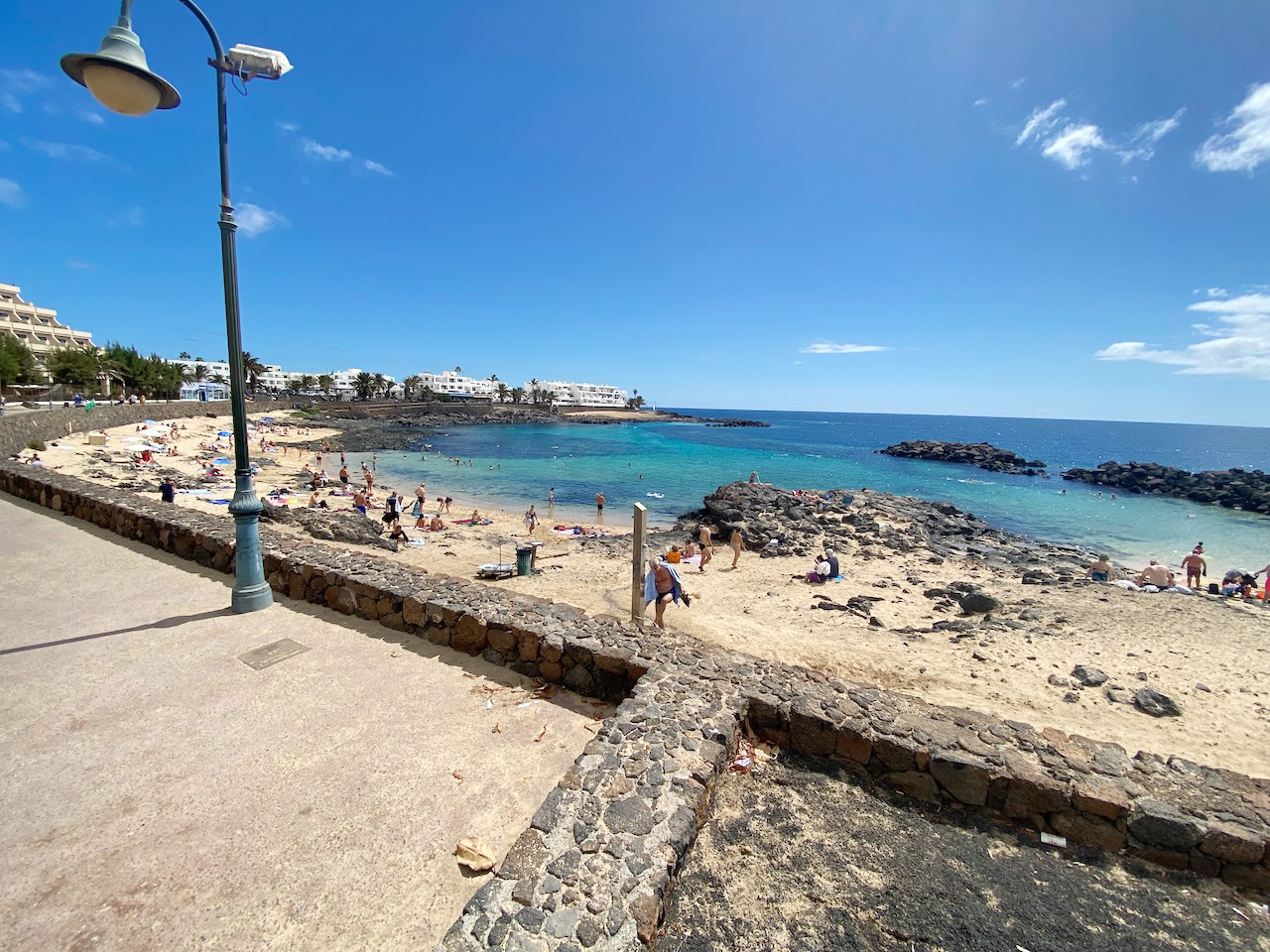 Lovely sheltered beach in Costa Teguise. There are a few areas to sunbath.