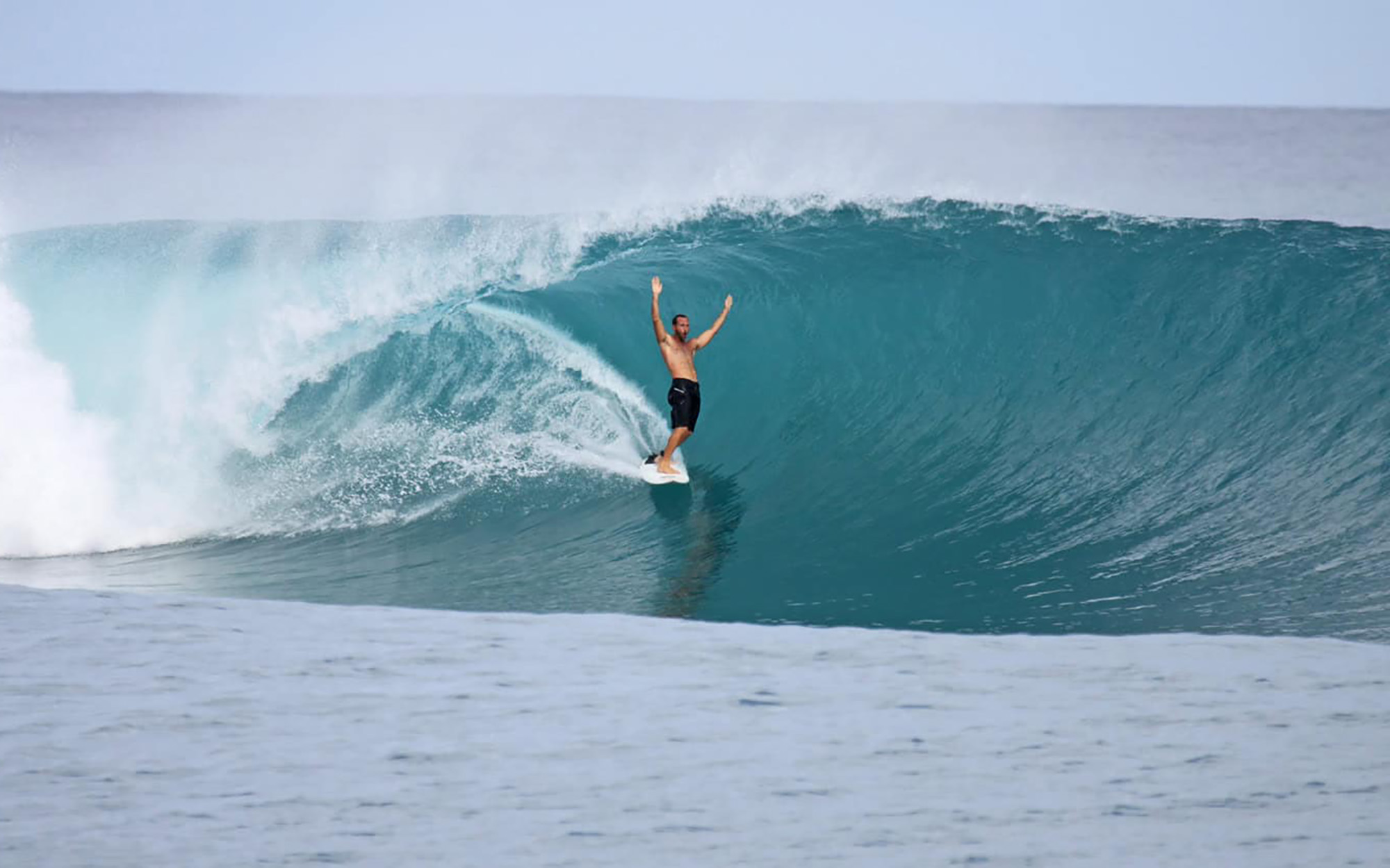 The most consistent spot on the island. Right hand wave over reef and rounded pebble like rocks that are super slippery with urchins down the gaps.