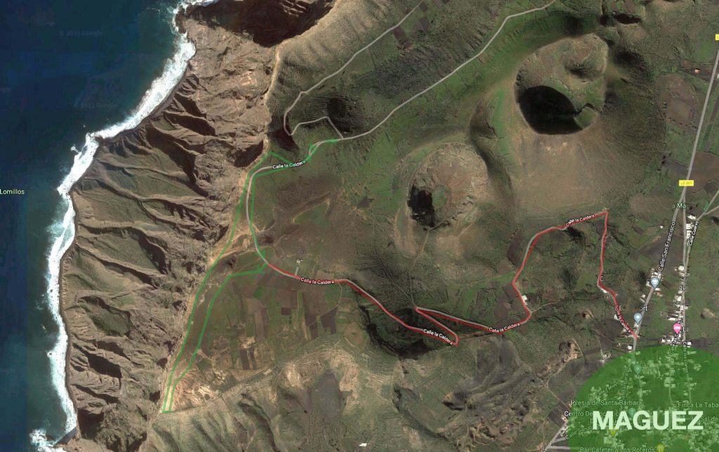 Head to Maguez just of of Haria. Take the road heading from Maguez to Ye. A few about 100 meters on the left take the road marked in red on the map.