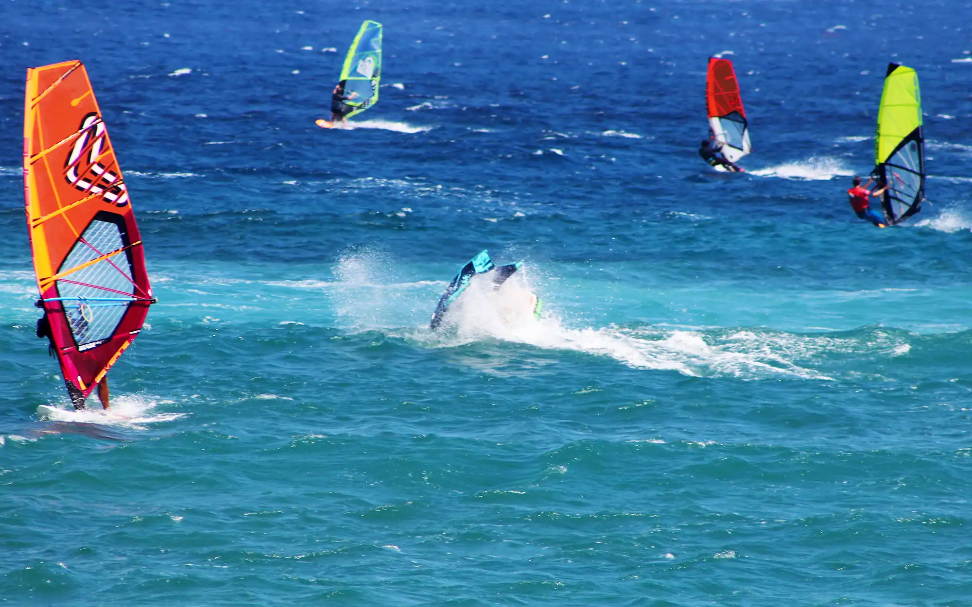 Windsurfers from across Europe arrive in Lanzarote for the consistent winds and waves found in Costa Teguise and Jameos del Agua.